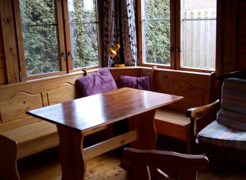 Gemütliches Chalet, es gibt 4 Einzelbetten, so dass 4 Personen schlafen können. Es gibt ein Schlafzimmer im Erdgeschoss mit 2 Betten und zwei Betten im Obergeschoss. Küche und Bad sind im Naturhäuschen vorhanden. Ein gemütlicher Palettenofen hält es gut warm. Der Preis von 90 Euro gilt für 2 Personen ohne 1,70 Touristensteuer p.P.P.N. Für die dritte und vierte Person berechnen wir 25 Euro p.P.P.N. extra. Ab Juni kannst du nur noch ab einem Aufenthalt von 2 Nächten buchen. Für eine Person beträgt der Preis 51,70 € pro Nacht. Im Juli und August kannst du ab 3 Nächten für mindestens 2 Personen buchen. Auch an Christi Himmelfahrt, Ostern und Pfingsten müssen mindestens 2 Nächte gebucht werden.