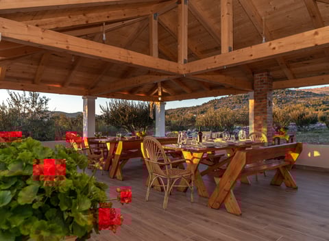 Die sorgfältige Platzierung der Glamping-Einheiten und ihr Design fügen sich perfekt in das felsige Terrain unter ihnen ein. Die Holz-Glamping-Einheiten sind mit Zeltplanen bedeckt und komplett aus natürlichen Materialien gebaut. Glamping Marta, der einzigartige Glampingplatz, wo der einfache Komfort von charmanten Zelten und eine echte Erfahrung des Zusammenlebens mit der Natur geboten wird. Glamping Marta liegt in der Landschaft von Marina, nur 10 Minuten mit dem Auto vom Meer entfernt. Auf 12 500 m2 sind über 250 Olivenbäume gepflanzt und 5 komfortable Glamping-Zelte für 2 Personen. Unser Hauptziel ist es, unseren Gästen viel Platz, Ruhe und Privatsphäre zu bieten.