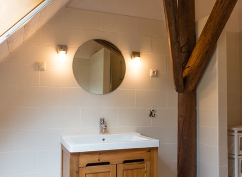 Wir heißen dich in unserem herrlich großen Ferienhaus willkommen. Seit 2004 wurde der vordere Teil unseres Bauernhauses zu dem umgebaut, was es heute ist: ein großes (über 275m2) und sehr komfortables Ferienhaus für 12-14 Personen, das sich schnell wie ein Zuhause anfühlt. Das Haus hat eine große, sehr komplette Küche, eine Spülküche, ein Wohnzimmer mit Holzofen, eine separate Toilette im Erdgeschoss, 6 Schlafzimmer (2 im Erdgeschoss, 4 im Obergeschoss) und 2 Badezimmer (1 im Erdgeschoss mit großer Badewanne, Doppelwaschbecken, Dusche und Toilette und 1 im Obergeschoss mit Waschbecken, Dusche und Toilette). In 5 großen Schlafzimmern gibt es doppelte Boxspringbetten, die je nach Wunsch als Doppelbett oder 2x als Einzelbett aufgestellt werden können, und in 2 Zimmern gibt es ein drittes Bett. Das 6. (kleinste) Zimmer hat ein kleines Doppelbett (1,40). Der große Garten hat 2 Terrassen und viel Platz zum Entspannen, draußen essen, um ein Feuer sitzen oder zum Spielen/Aktivieren. Wir beide und unsere Tiere leben auf der Rückseite des Bauernhauses, so dass alles getrennt ist und die Privatsphäre gewahrt bleibt.