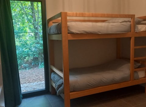 Neues, gemütliches Ferienhaus inmitten des schönen Visbeek-Tals, einem der schönsten Naturschutzgebiete in der Region Antwerpen Kempen. Hier kannst du dich inmitten der Natur völlig entspannen. Das Ferienhaus ist neu aus dem Jahr 2022 und verfügt über 2 Schlafzimmer, ein Badezimmer mit Dusche und WC und ein großes Wohnzimmer mit Küche inklusive Backofen und Spülmaschine. Im Garten kannst du in aller Ruhe den Whirlpool genießen. Sei herzlich willkommen! Die Betten sind gemacht und im Schrank findest du eine Grundausstattung an Standardhandtüchern. Also ankommen und genießen. Auch an die Kleinen ist gedacht. Ein Kinderbett, ein Hochstuhl, Geschirr und eine Wickelauflage sind vorhanden. Ein paar Spiele sind vorhanden, um Regentage angenehmer zu gestalten. Im Garten können die Kinder direkt in den Wald gehen und sich im Baumhaus austoben! Gut zu wissen: Das Wasser in der Hütte wird aus einer Tiefe von 125 Metern gepumpt! Es ist reines Wasser und gut für den täglichen Gebrauch, aber wir empfehlen es nicht als Trinkwasser!